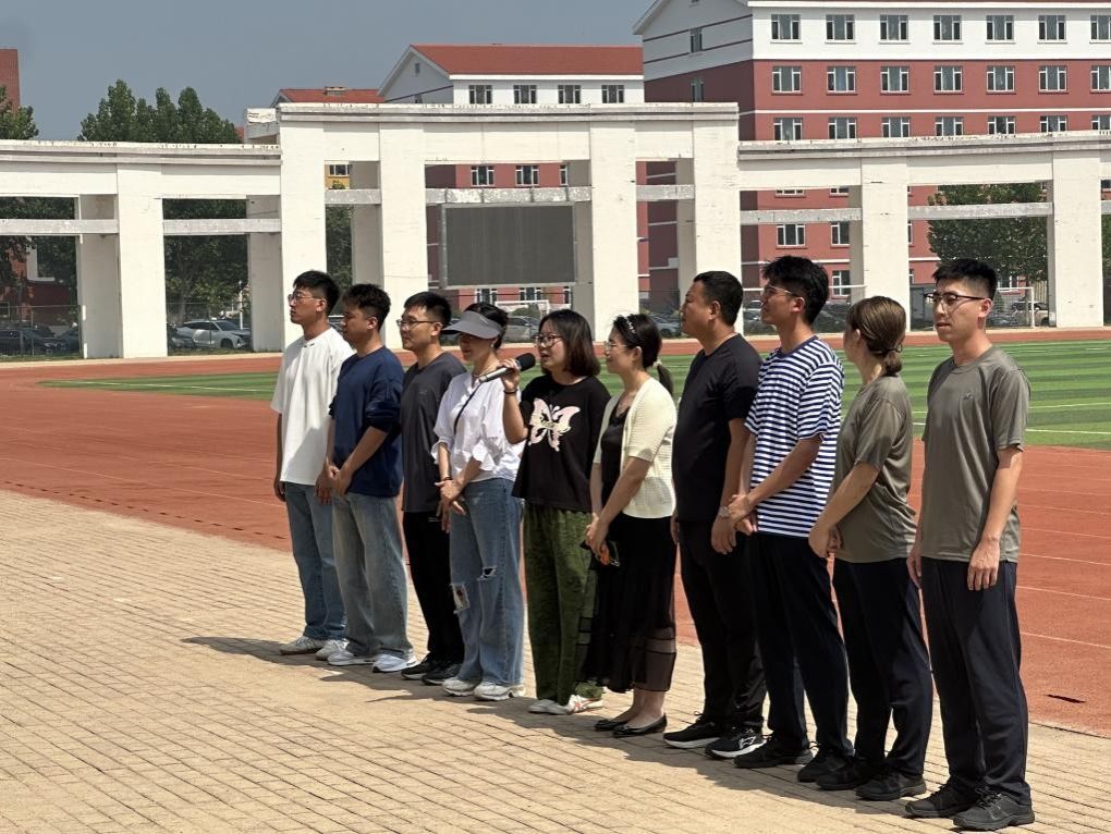 在龙湾校园体育场召开军训动员大会。学院党委副书记周筱淋、全体辅导员及2025级新生参会,动员会由2025级新生带训教师、学院学工部主任张韵主持。