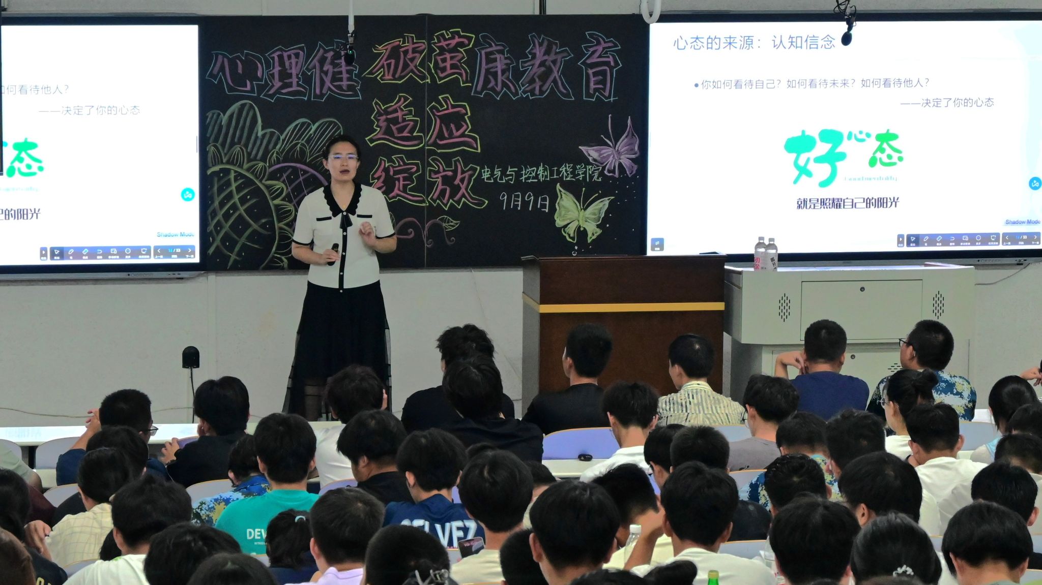 本次讲座以“破茧,适应,绽放”为主题,主讲教师聚焦新时代大学生的心理需求与特点,倡导以积极心态拥抱大学生活,并针对性地引导新生面对未知时学会自我心理调适,提升其心理健康素养,帮助他们树立正确的心理健康意识。在交流互动环节,主讲教师通过生动案例,介绍了调整心态的实用方法和及时发现并解决心理问题的策略,进一步引导新生科学管理情绪,勇于面对挫折。