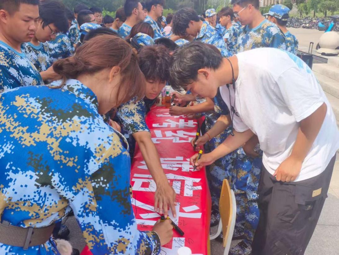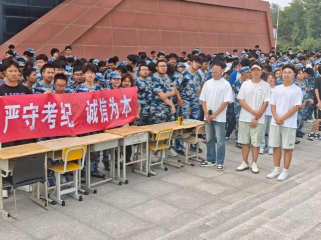 活动伊始,“严守考纪,诚信为本”的红色横幅在教学楼前格外醒目。各班级负责人带领同学们有序上前,郑重签下自己的姓名。笔尖划过横幅的沙沙声,既是新生对诚信考试的庄严承诺,也拉开了本次诚信教育活动的序幕。