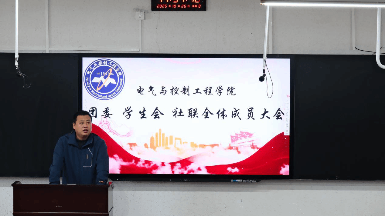 会上,张新鑫老师首先上台进行了发言,他提到,学生组织是联系学院与同学的桥梁纽带,全体成员要牢记“服务同学、锻炼自我”的初心,以“高标准、严要求”投入工作,既要当好学院各项工作的“执行者”,也要做好同学们学习生活中的“引领者”,在实践中锤炼品格、增长才干。