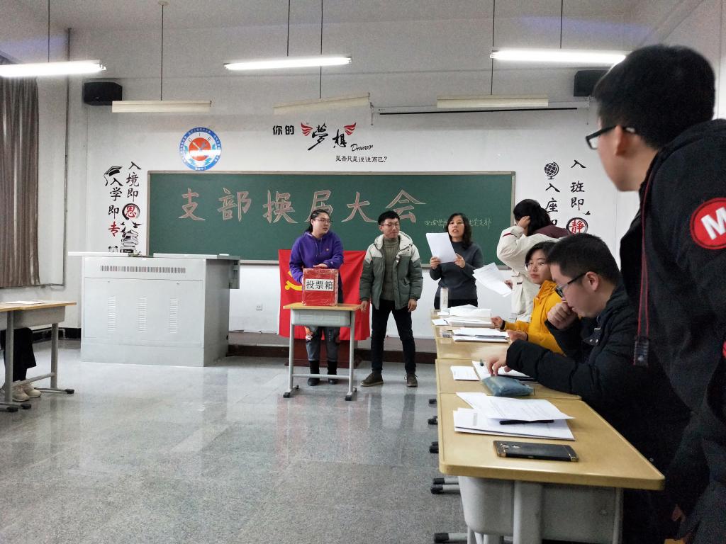 学生第一党支部召开换届选举大会,大会由党支部书记贾鑫同志主持,全体党员参会。