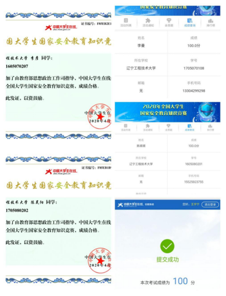 一、开展“安全知识网上学习及答题”活动。“中国大学生在线”微信平台为学生党员们提供了丰富的国家安全教育知识,党员们在学习过程中不仅收获了丰富的安全知识,还通过专题答题来检验学习成果。支部所有党员均参与了此次学习及答题活动,严肃认真的态度收获了优异的成绩。