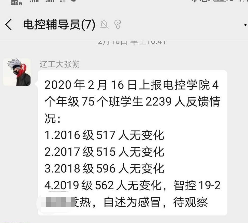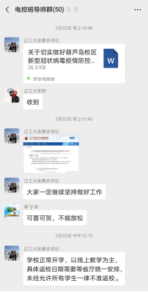 学院施行微信群每日“零汇报”制度,并做到全网覆盖——学生在班级群反馈,班导师在年级群上报,辅导员在辅导员群汇总,工作流程短、平、快,信息收集快、准、全。为辅助班导师工作,学院统计更新了全院学生和家长的手机联系方式,牢固家校联系,保证可以随时联系到学生及家庭。