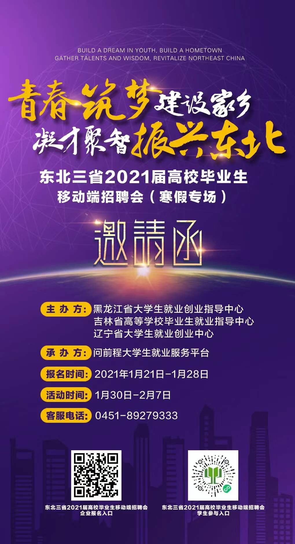 为进一步完善高校毕业生就业支持体系,加强区域联动与协作,振兴东北经济发展,全力促进高校毕业生更加充分更高质量就业,东北三省联合举办2021届高校毕业生移动端招聘会(寒假专场)。爱爱视频