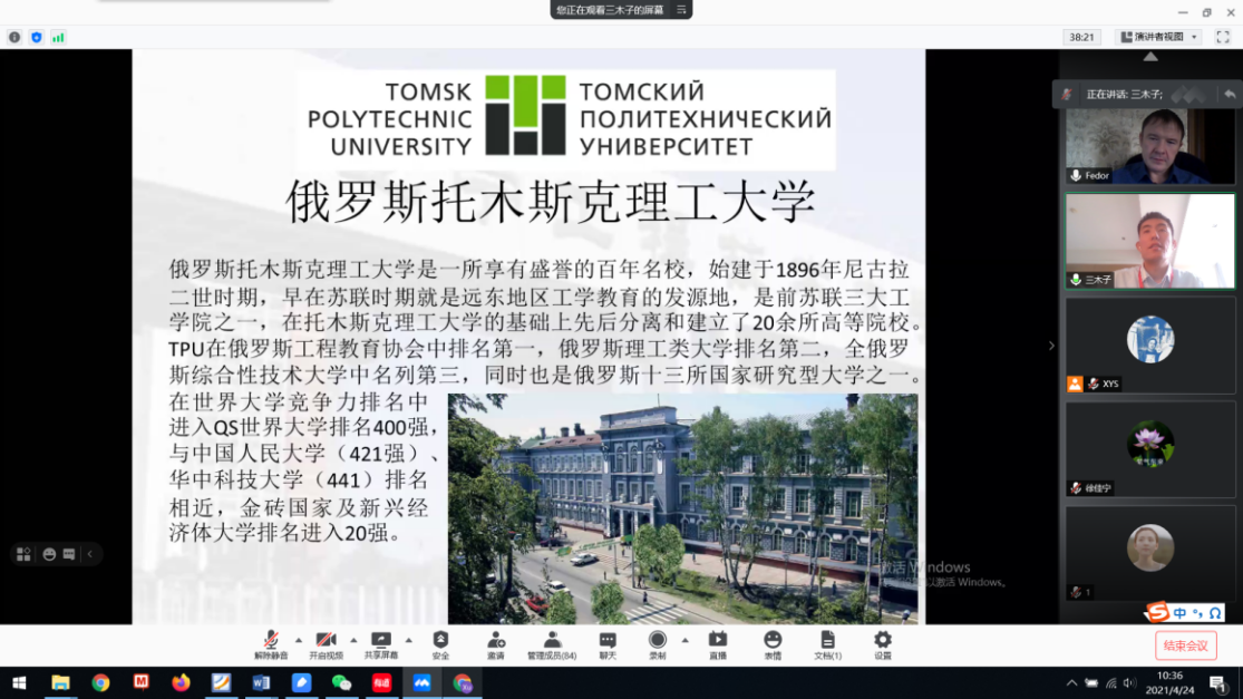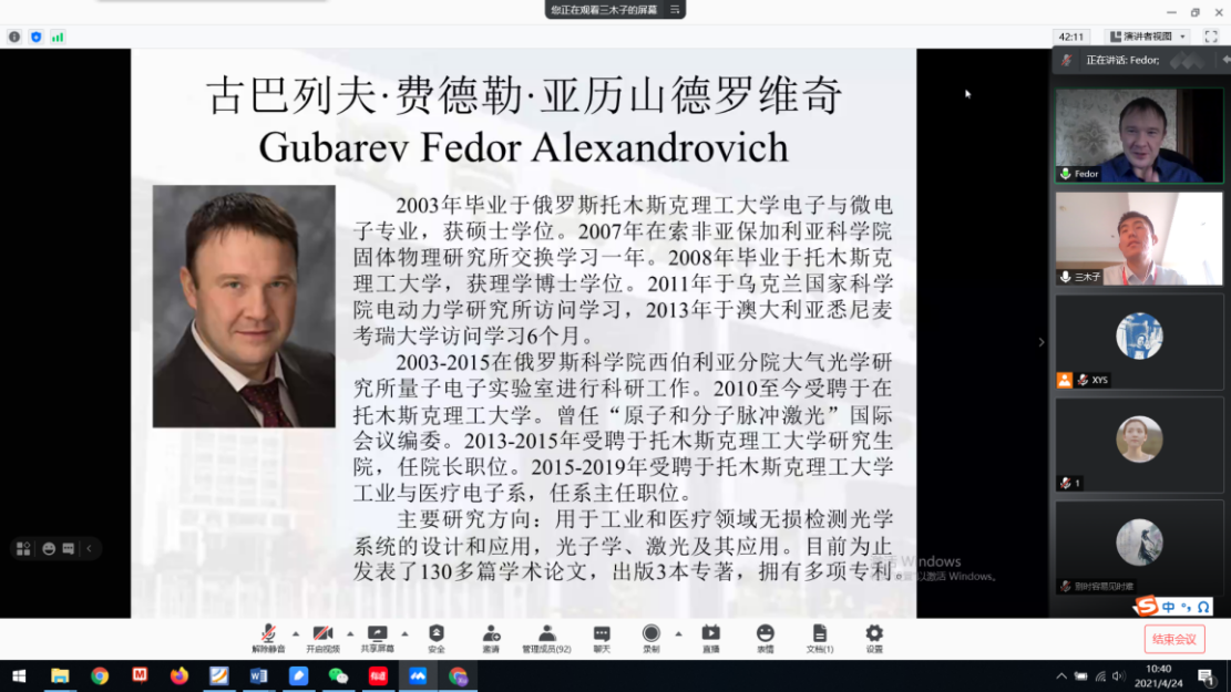 4月24号上午10:30,俄罗斯托木斯克理工大学,费德勒·亚历山德罗维奇教授应爱爱视频