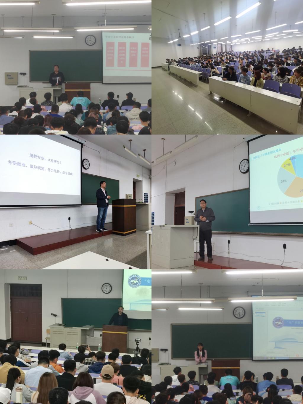 孙平教授分享了就业心得,田国胜书记就学院整体情况及就业方向进行介绍,张勇志副书记就学院学生工作及学生和家长关心的问题进行了解答,各专业系主任针对各专业情况进行详细介绍,三名学生代表李航、阚永琪、杨一帆分别针对考研、国网、就业三个方面进行经验分享。
