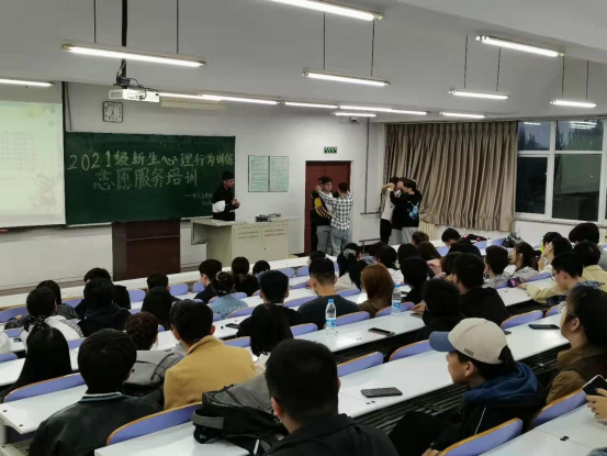 为了保证活动的整体效果,本次活动以班级为单位,每个班级分为3个小组,共计75个小组。大学生心理健康自我教育委员会面向学院学生干部招募心理行为训练志愿者,并且对志愿者进行系统培训,使其达到团训助教的标准。现场活动开始前,由姜喜双老师对团训助教进行培训指导。本次训练包括松鼠与大树、叠罗汉、组建团队、绝地求生、蛟龙出海五个项目。