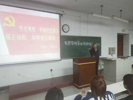 第三讲校区组织人事部李旭春老师围绕学习党史重要意义、中国共产党百年历史的脉络和线索、中国共产党取得的辉煌成就三个方面对中国共产党百年发展历程进行了集中阐述。告诫全体同学要逐步树立正确的党史观,认清历史虚无主义的实质和危害。