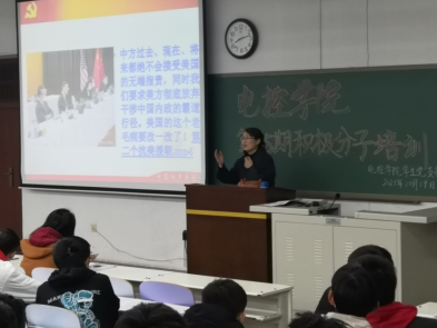 学生第三党支部书记武书宁老师分别给入党积极分子上了党课。学生党员及入党积极分子300余人参加了培训。
