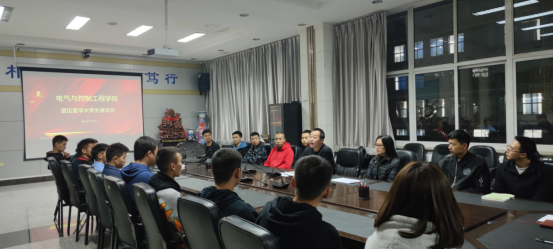 在静远楼232-3会议室召开退伍复学大学生座谈会。学院党委副书记兼副院长张勇志、征兵工作负责教师武书宁,以及20名2021年退伍复学大学生参加会议。