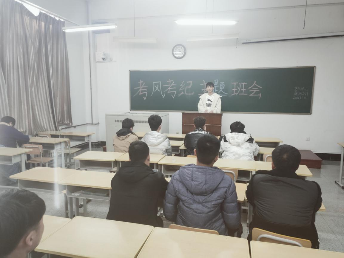 学生手册》的相关章程,张驰老师通过列举学院近几年因考试作弊而被处分的学生事例,警示同学们违反考风考纪带来的严重后果,并指出考风建设是学风建设、校风建设的一个重要方面,因此各班级要认真贯彻诚信考试工作的相关规定,以良好的考风促学风。