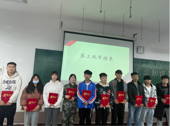 举办了宪法学习知识竞赛。20级、21级共52个班级各派一名代表参赛,参赛的52名选手赛前被随机分成5组。竞赛分为三个环节:第一环节为必答题,题目类型为填空题。第一环节采取小组积分的形式,排名末尾的两个小组将会被淘汰;第二环节为抢答题,题目类型为选择题。晋级的小组按顺序上台,进行抢答,赢取个人积分,个人积分前十名的选手将进入到第三环节进行比赛;第三环节,材料分析题。成功晋级的十名选手,共分五组,两人一组。选手认真阅读材料,结合宪法知识进行作答,由评委进行打分。经过激烈的比拼,最终来自电网21-1班的王文强同学获得本次竞赛一等奖,电气20-12班的赵文强等三名同学获得二等奖,智控21-1班的石冼平等六名同学获得三等奖。