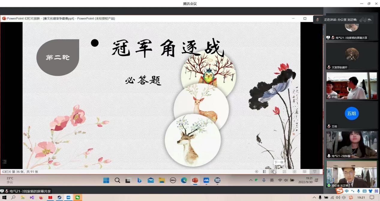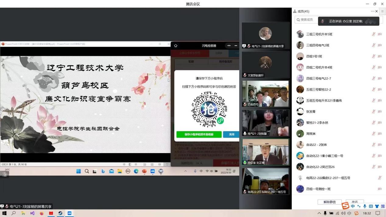 2022年9月30日18点30分“廉文化”知识的比赛正式开始。特别的是为了在让同学们静默期间的生活更加丰富、充实,愉快度过课余生活,我们比赛规则也有了更好的改进,使得比赛更加激烈精彩。