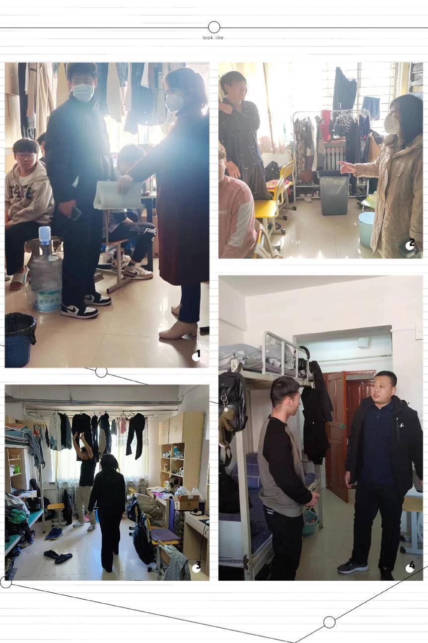 于2023年3月2日组织全体辅导员、班导师走访学生寝室,深入了解学生新学期精神风貌,敦促学生养成良好的卫生习惯,呼吁大家增强自我防护意识。