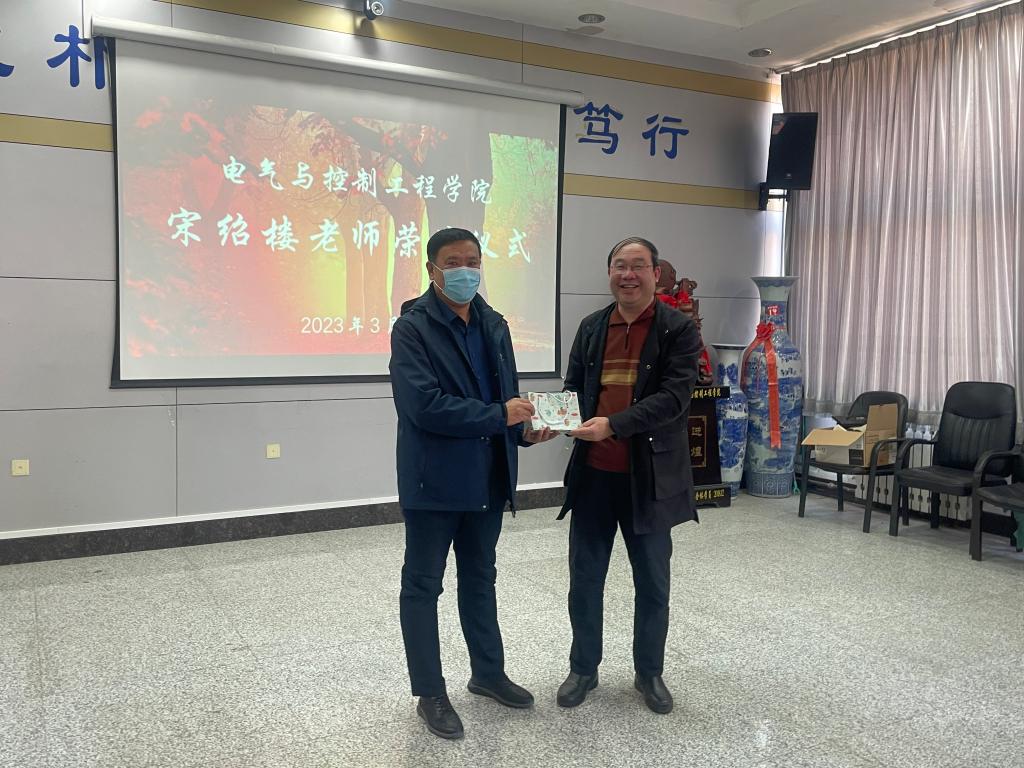 荣休仪式上,院长彭继慎为宋绍楼老师送上了荣休纪念品。感谢宋绍楼老师甘为人梯,孜孜不倦的工作,感谢宋绍楼老师为学校建设、学院发展所做的贡献。