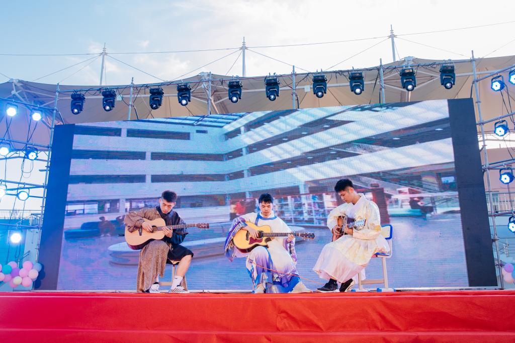 本次晚会分为“青春拂晓,圆梦今宵”、“季忆留夏、追梦韶华”、“兮溯流光,携梦启航”三个篇章。晚会以2023届毕业班班导师MV《多远都可以到达(YES!OK!)》拉开序幕,一字一句牵动着每个人的心灵,潜移默化中拉近了老师与同学之间的距离。余音绕梁的歌声、幽默诙谐的脱口秀、气势磅礴的大合唱……精彩纷呈的节目不仅蕴含着毕业生们的不舍,也隐含着老师和学弟学妹们对毕业生的祝福。台下不间断的尖叫声、鼓掌声诠释着观众们对每个节目的认可。
