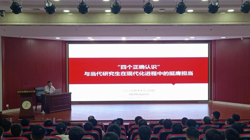 马克思主义学院院长金国峰教授以“‘四个正确认识’与当代研究生在现代化进程中的挺膺担当”为主题,进行了学院研究生“开学第一课”宣讲。金教授分“从国情、省情、校情正确认识当代研究生的责任和担当;现代化的本质是中国与世界的比较,关键是人的现代化;当代研究生要在‘四个正确认识’中推动中国式现代化”三个主题,结合国家发展与民族复兴、高等教育人才培养、辽宁振兴和学校发展等展开讲解,强调研究生是学校“双一流”建设的先锋军,将来是新时代的弄潮儿,要承担起民族复兴和国家富强的责任、使命和担当。