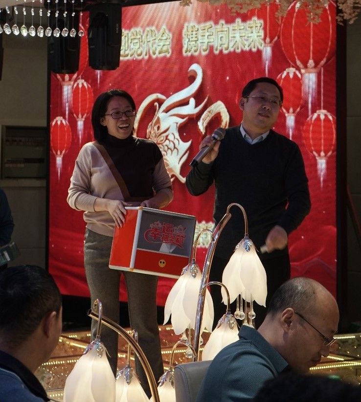 田国胜书记和彭继慎院长进行现场抽奖,丰厚的奖品将整个会场的变成了欢乐的海洋,所有老师的积极参与让联欢更富有活力。下半场的《同桌的你》《白舞惊鸿》《再回首》《恋曲1990》等节目完美地承接了这一热闹的氛围,同样引人入胜,让人置身于表演之中,难以忘怀。晚会在罗伟老师的歌曲《兄弟干杯》的旋律中落下帷幕。