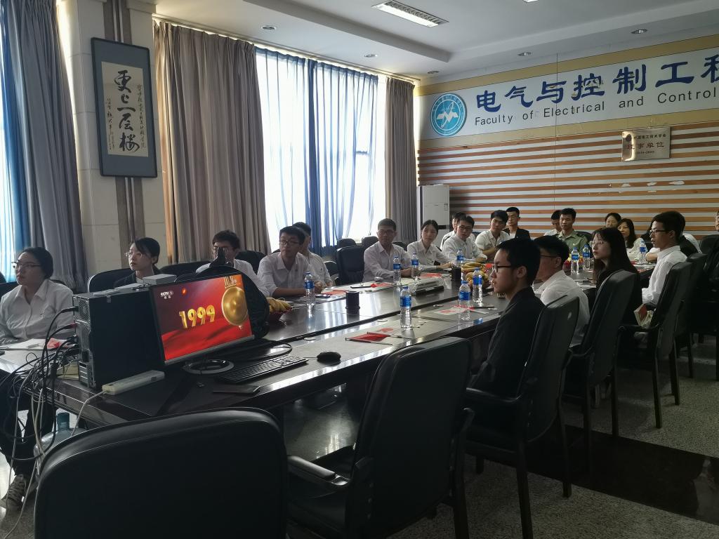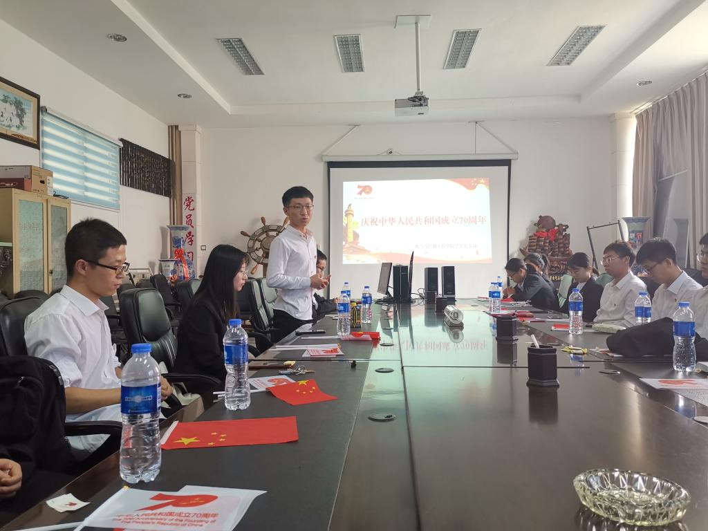 学生党支部于静远楼学院会议室开展了“观国庆阅兵、抒报国情怀”主题党日活动,25名在校党员和党支部书记贾鑫老师参加了此次活动。
