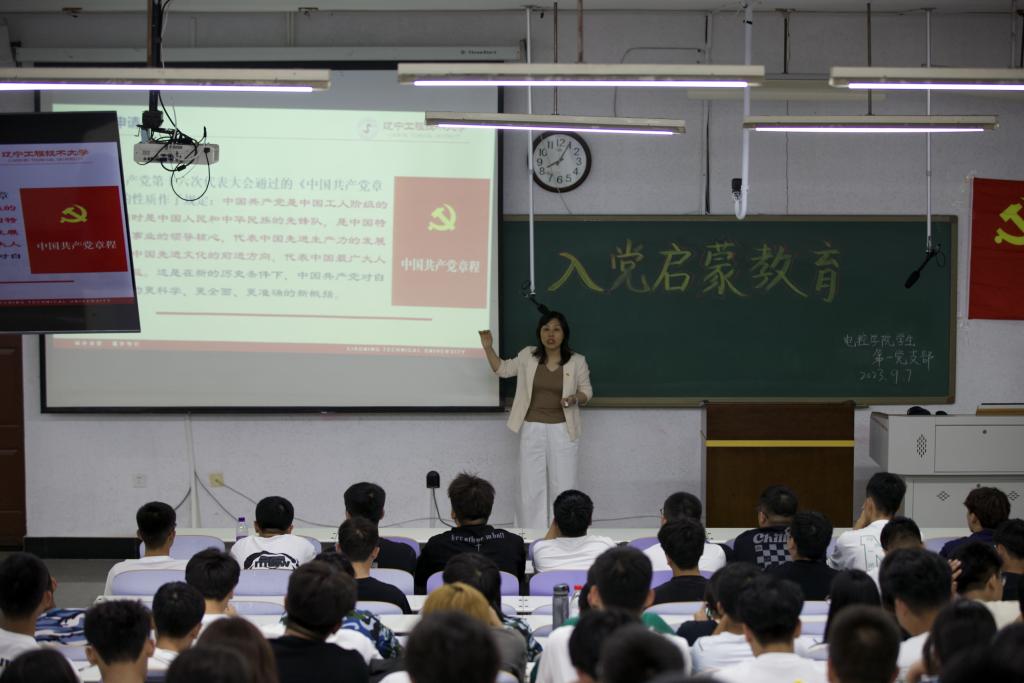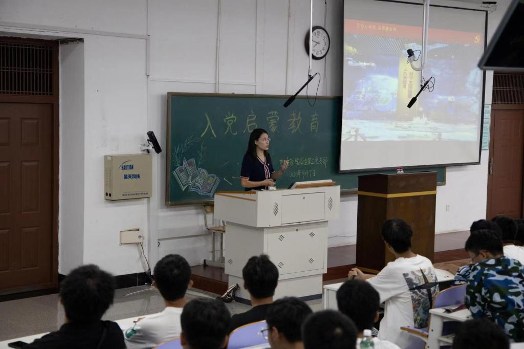 在尔雅107、208、209教室开展2023级新生入党启蒙教育。学院党委副书记兼副院长贾鑫、学生党支部书记施振雷、武书宁、学生党员以及600余名新生参加活动。