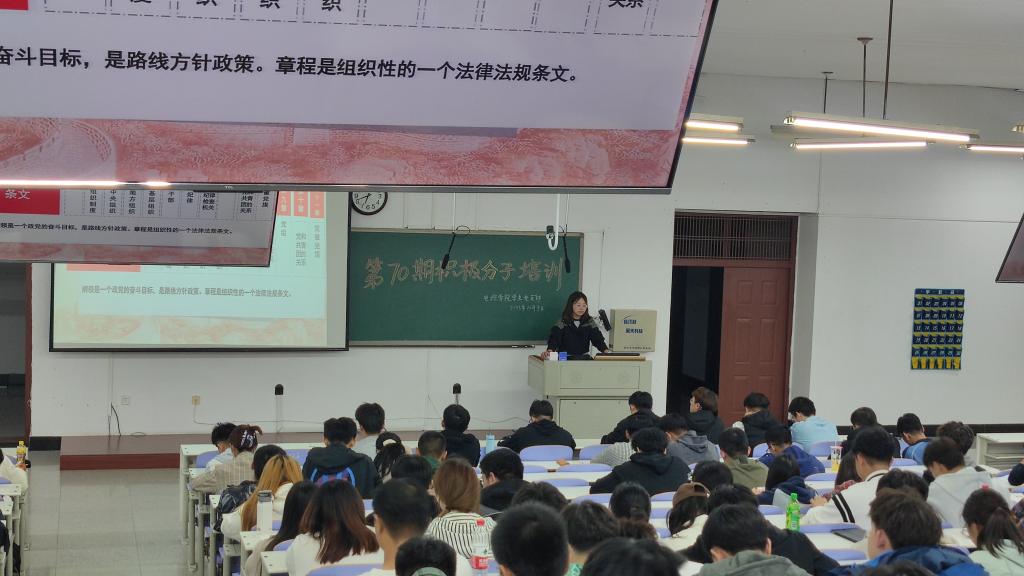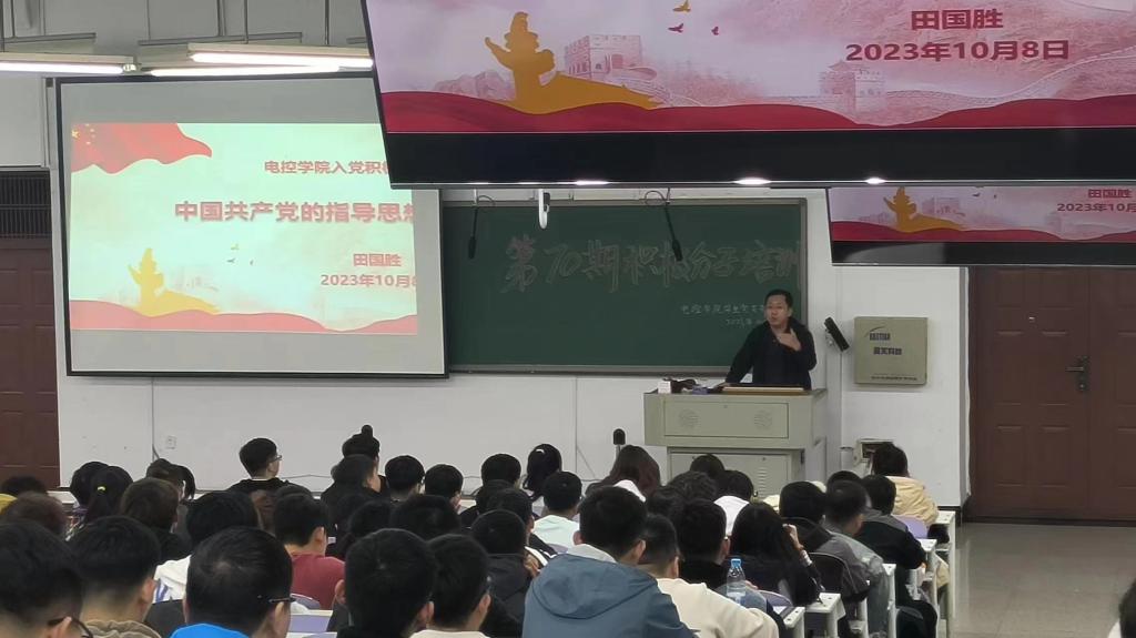 党委在尔雅楼208教室、209教室开展第70期入党积极分子培训。学院党委书记田国胜和学院组织员、学生党支部书记为培训班学员讲授党课,来自本科生和研究生的200余名入党积极分子参加了培训。