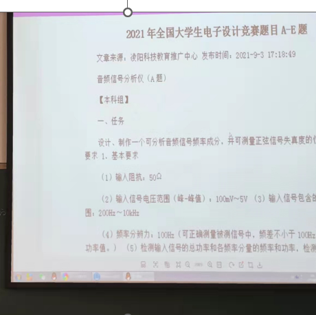 (通讯员 周筱淋)2023年4月20日,马玉芳老师为爱爱视频 2021级电气学生举行了一场主题为“电子设计大赛介绍及常用器件的使用”的大学生课外科研训练讲座。