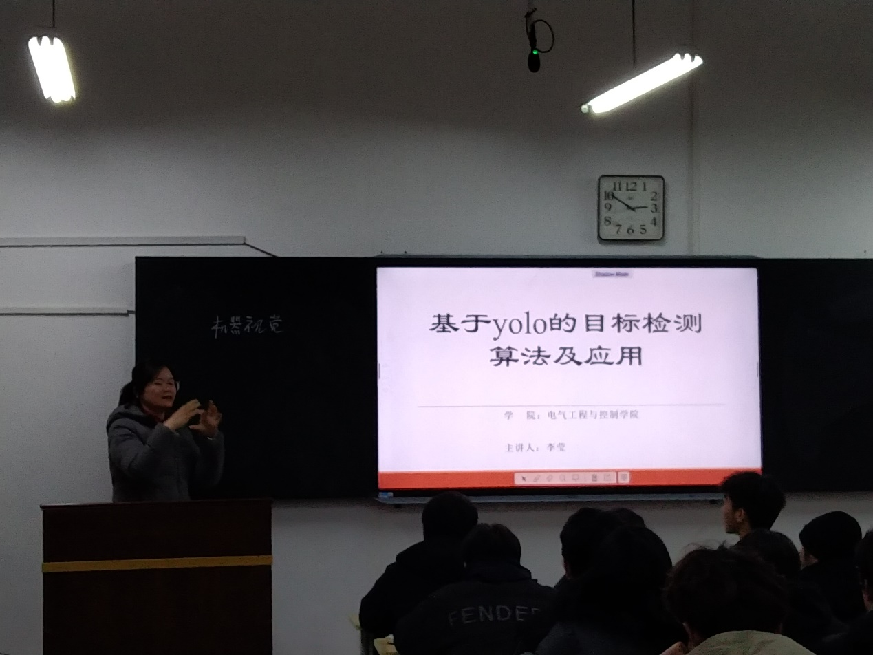 面向电控大三学生在静远334教室成功举办了大学生课外科研训练讲座。主讲人李莹以“基于yolo的目标检测算法研究及应用”为主题,深入讲解了目标检测的背景、意义及yolo系列目标检测算法。