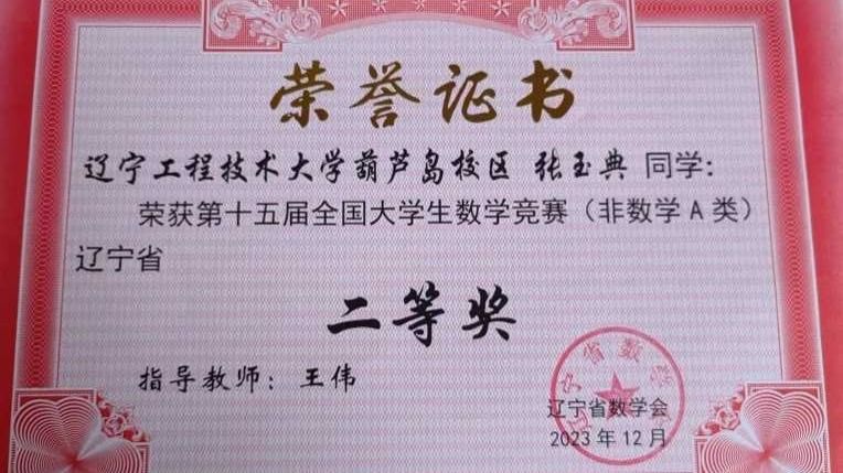 全国大学生数学竞赛 奖项:省级二等奖 指导教师:施振雷