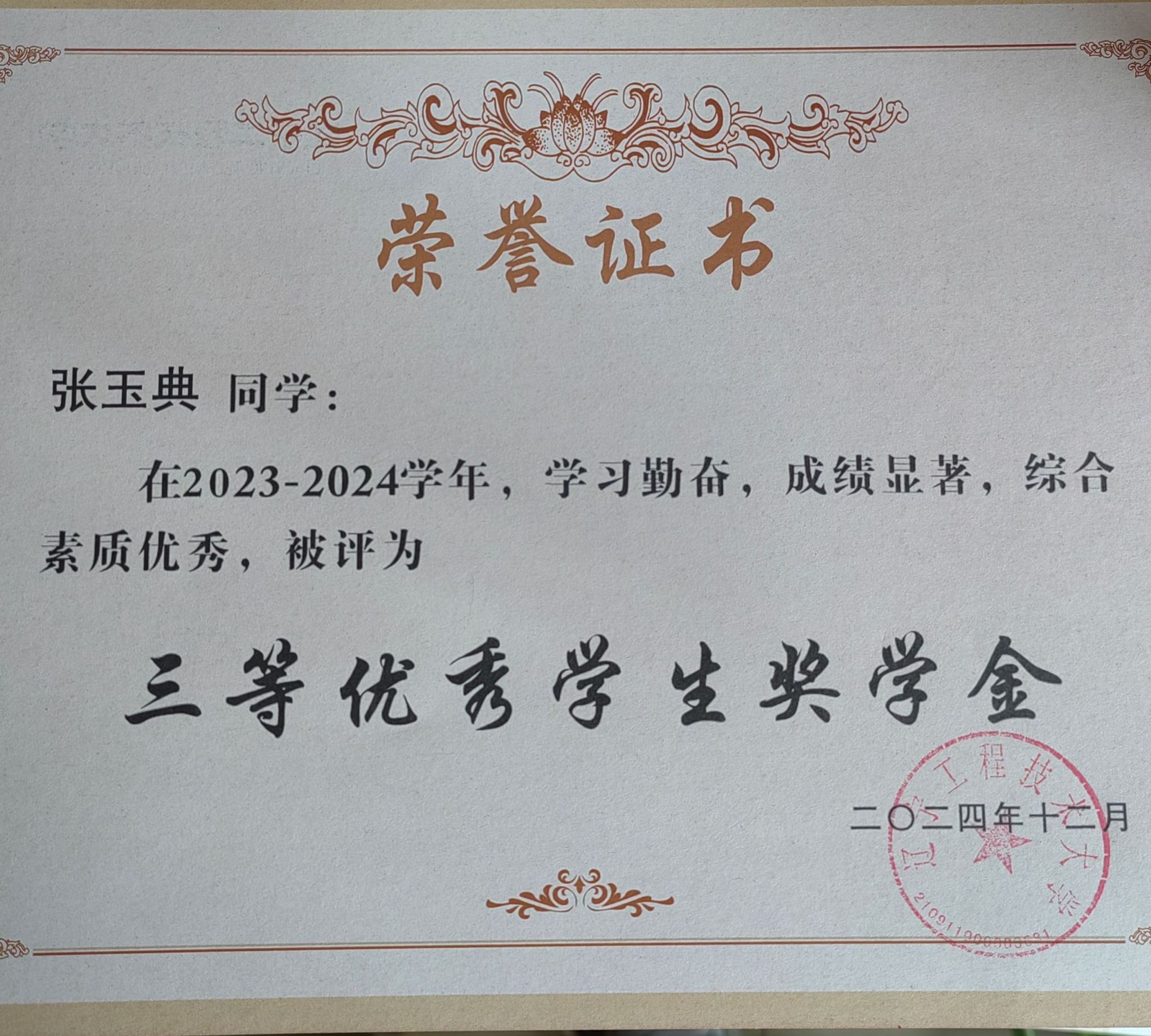 学习成绩类:2023-2024学年学习成绩排名专业第2名