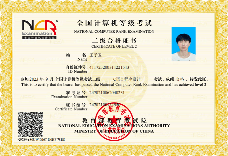 学业成绩类:2023年-2024年综合测评成绩排名专业第3名,学习成绩排名专业第5名;