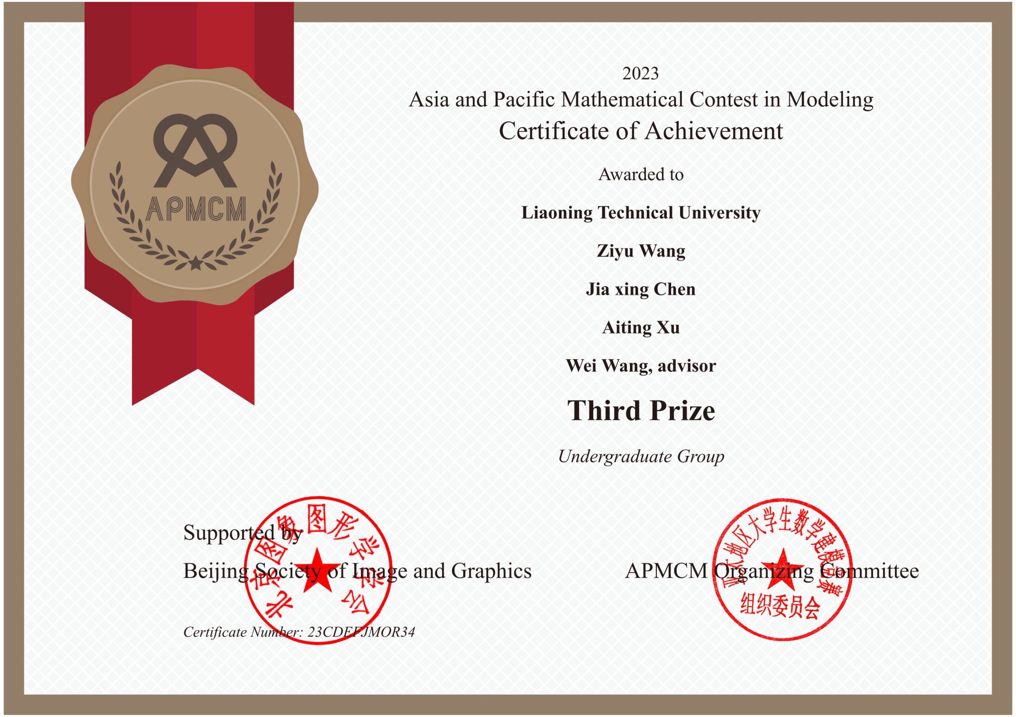 2 亚太地区大学生数学建模竞赛 奖项:国家级三等奖 指导教师:王伟