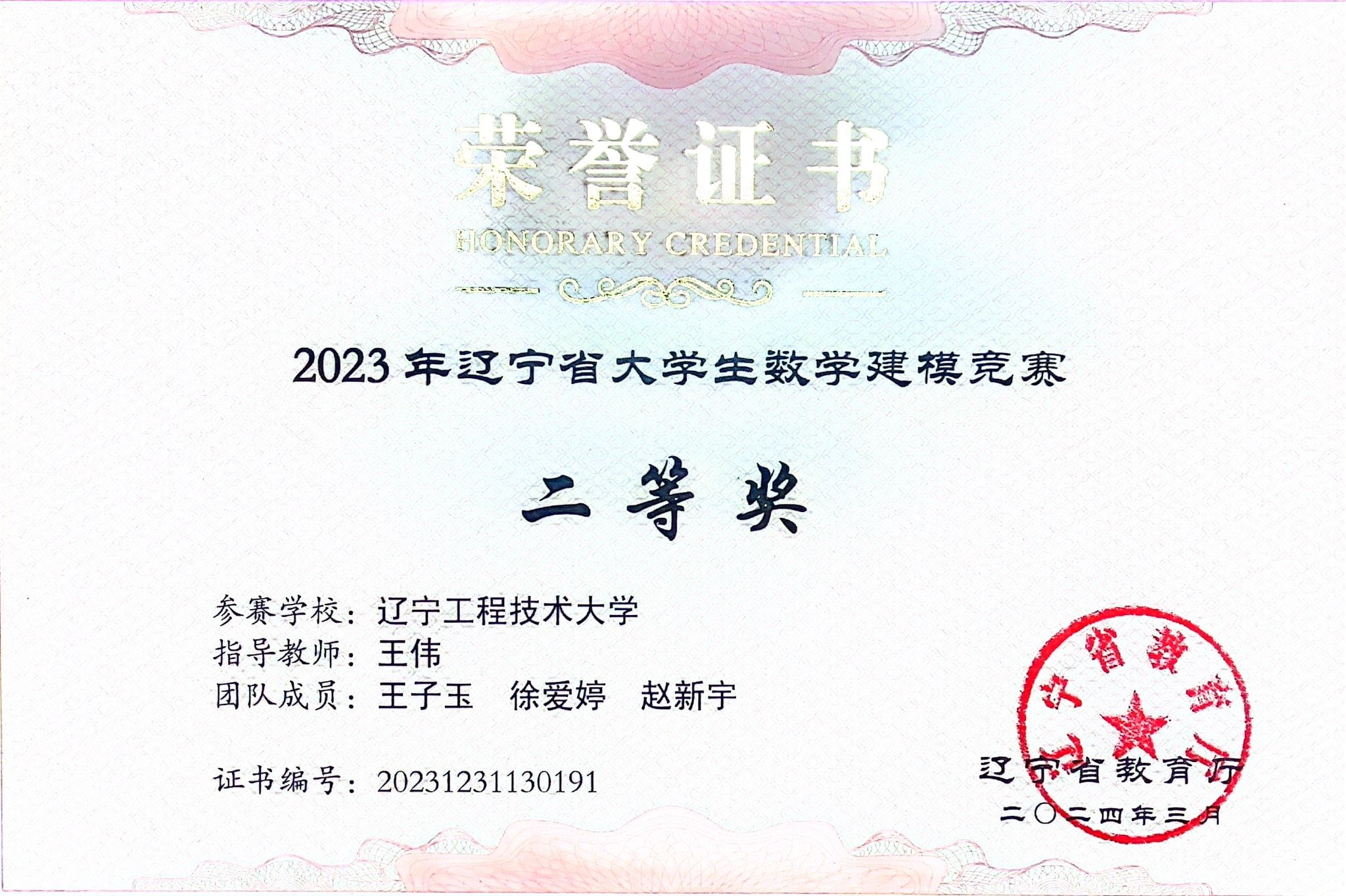 4 辽宁省大学生数学建模竞赛 奖项:省级二等奖 指导教师:王伟