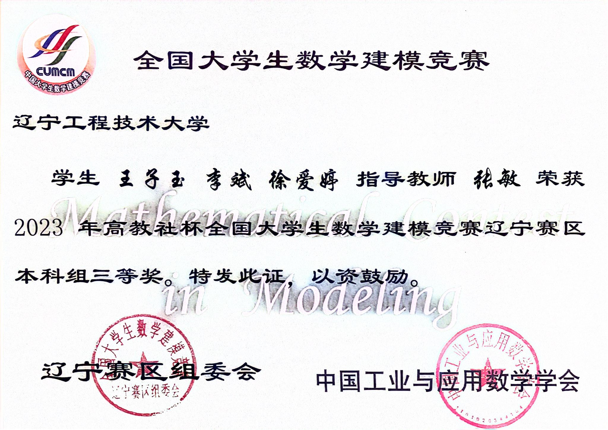 3 全国大学生数学建模竞赛 奖项:省级辽宁赛区三等奖 指导教师:王伟