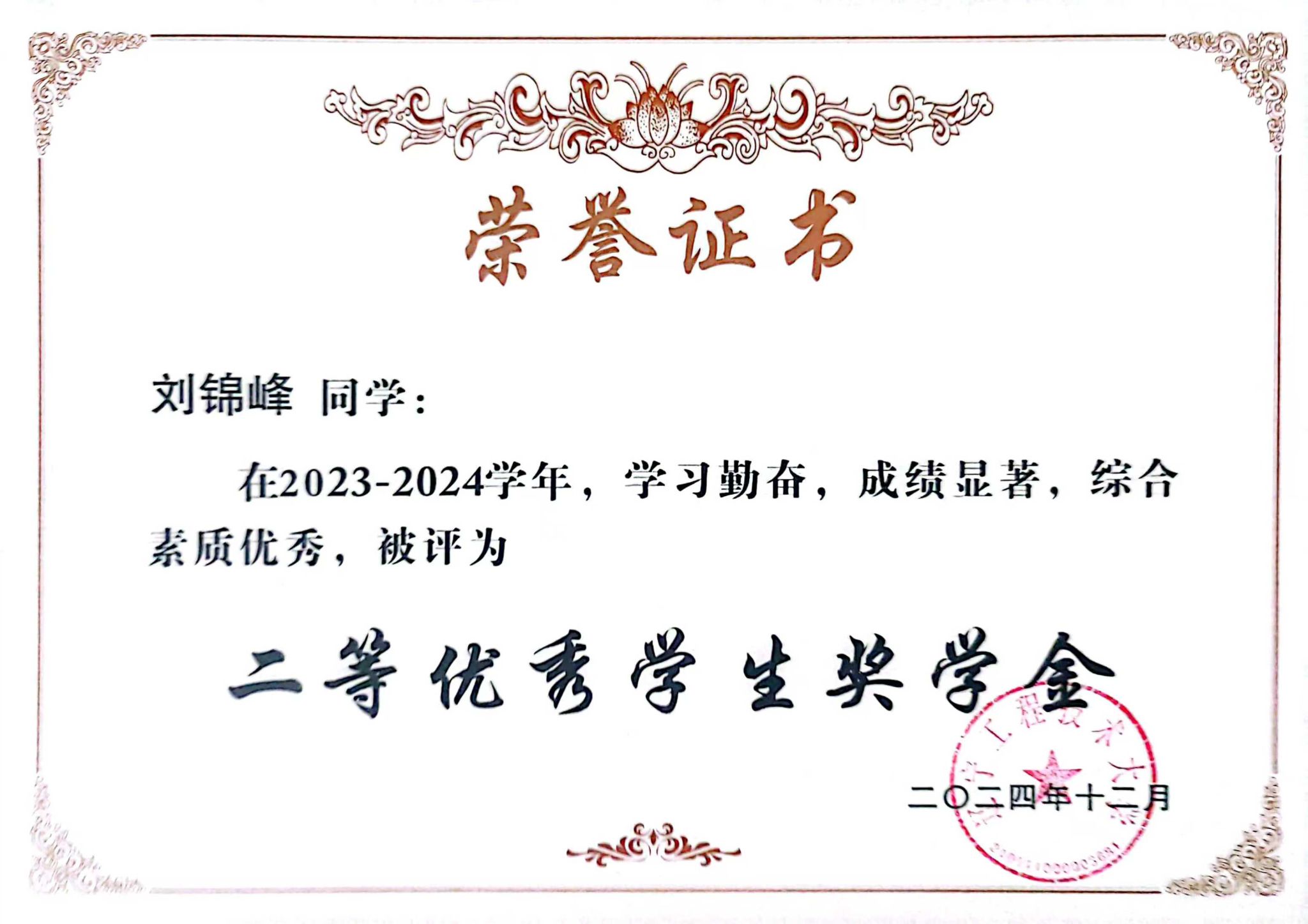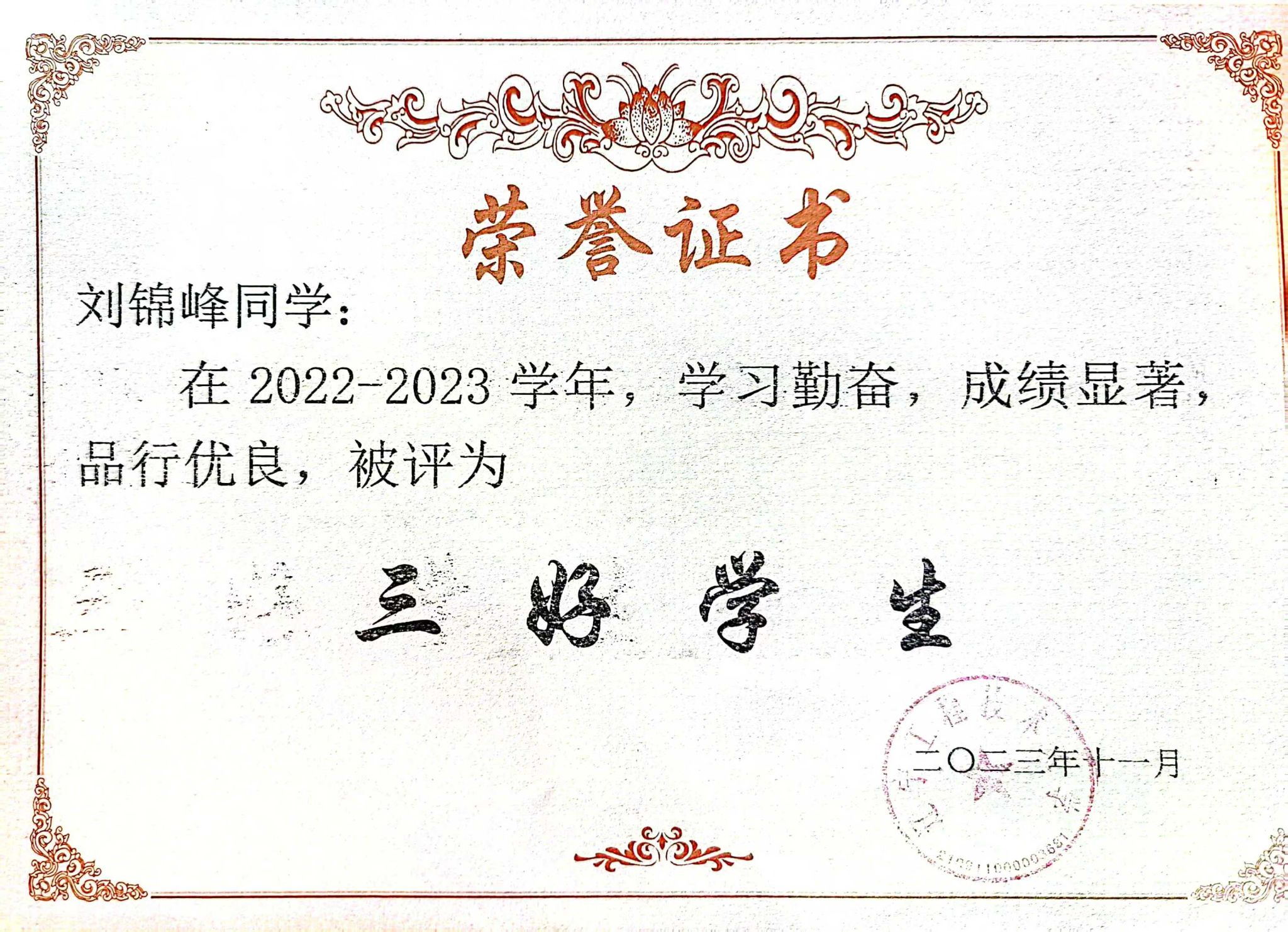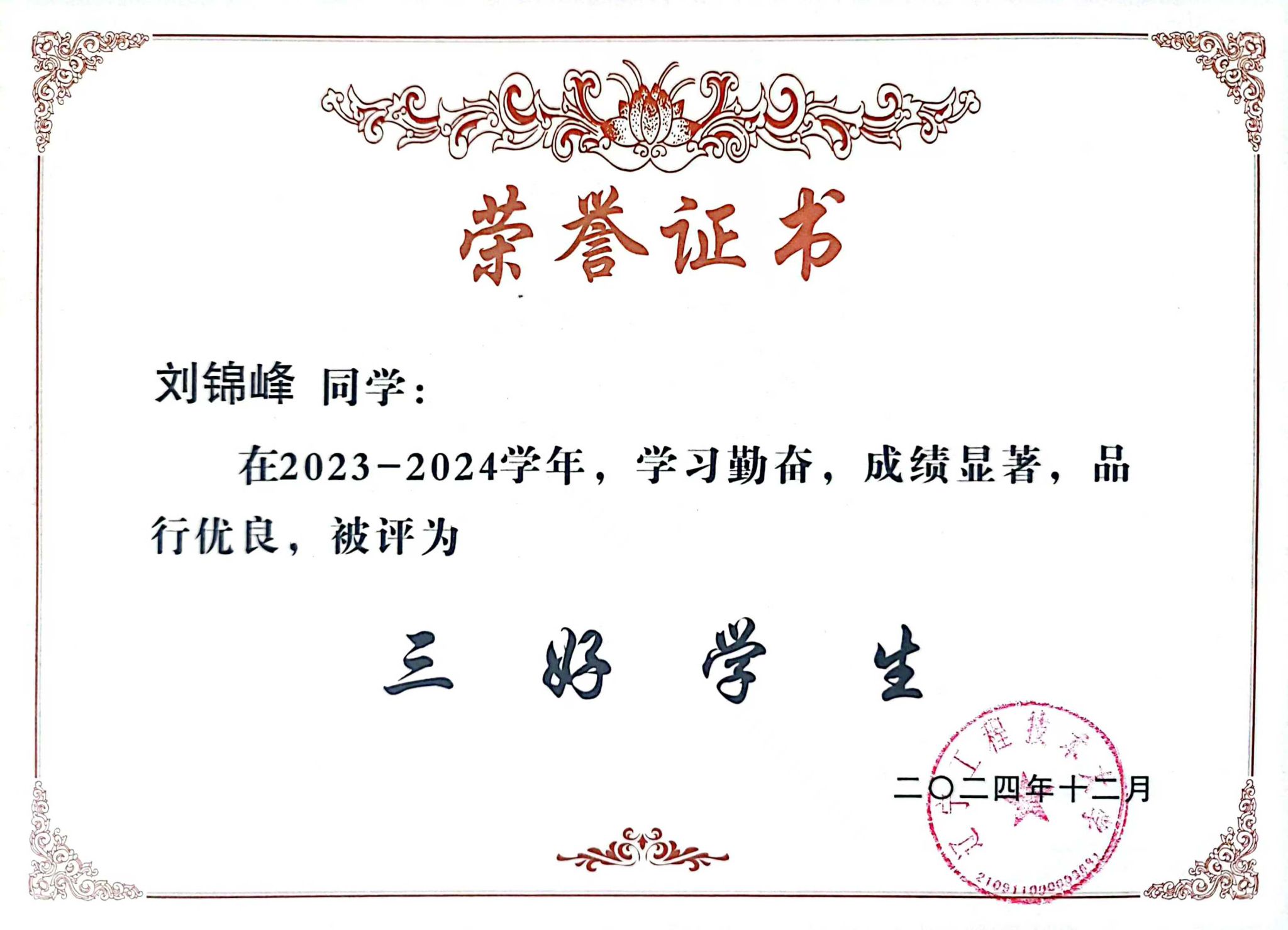 学习方面,课堂内,刘锦峰目光专注,思维紧跟教学节奏,积极回应老师提问;笔记详实,重难点突出,为课后复习筑牢基础。课后,迅速投身复习,依课程特点制作总结图表、案例分析,加深知识理解;课后,他广泛涉猎专业前沿论著、经典文献,拓宽学术视野;于实践中磨砺科研思维与实操能力,实现知识学以致用,努力成长为兼具理论深度与实践经验的优秀学子。