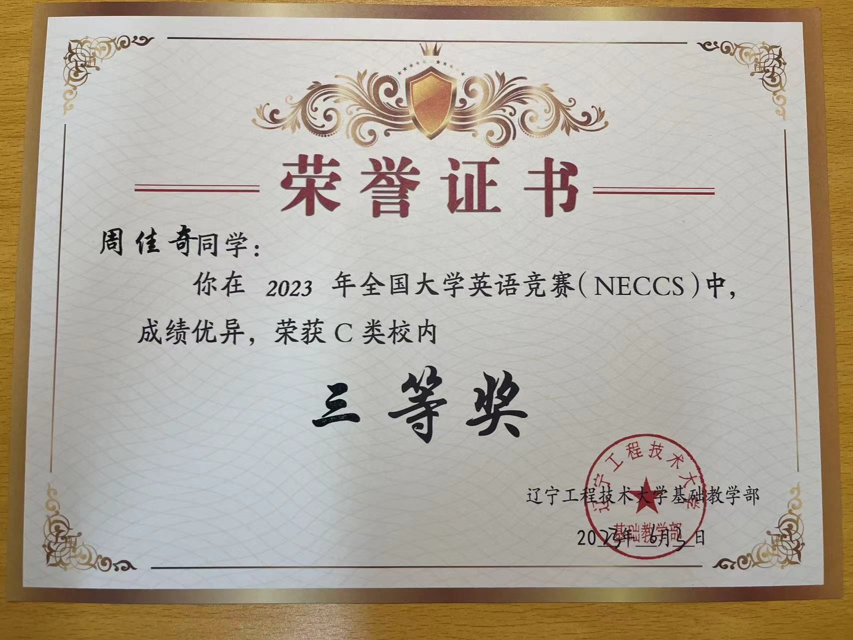 3 2023年全国大学生英语竞赛C类 奖项:校级三等奖 指导教师:姜斐斐