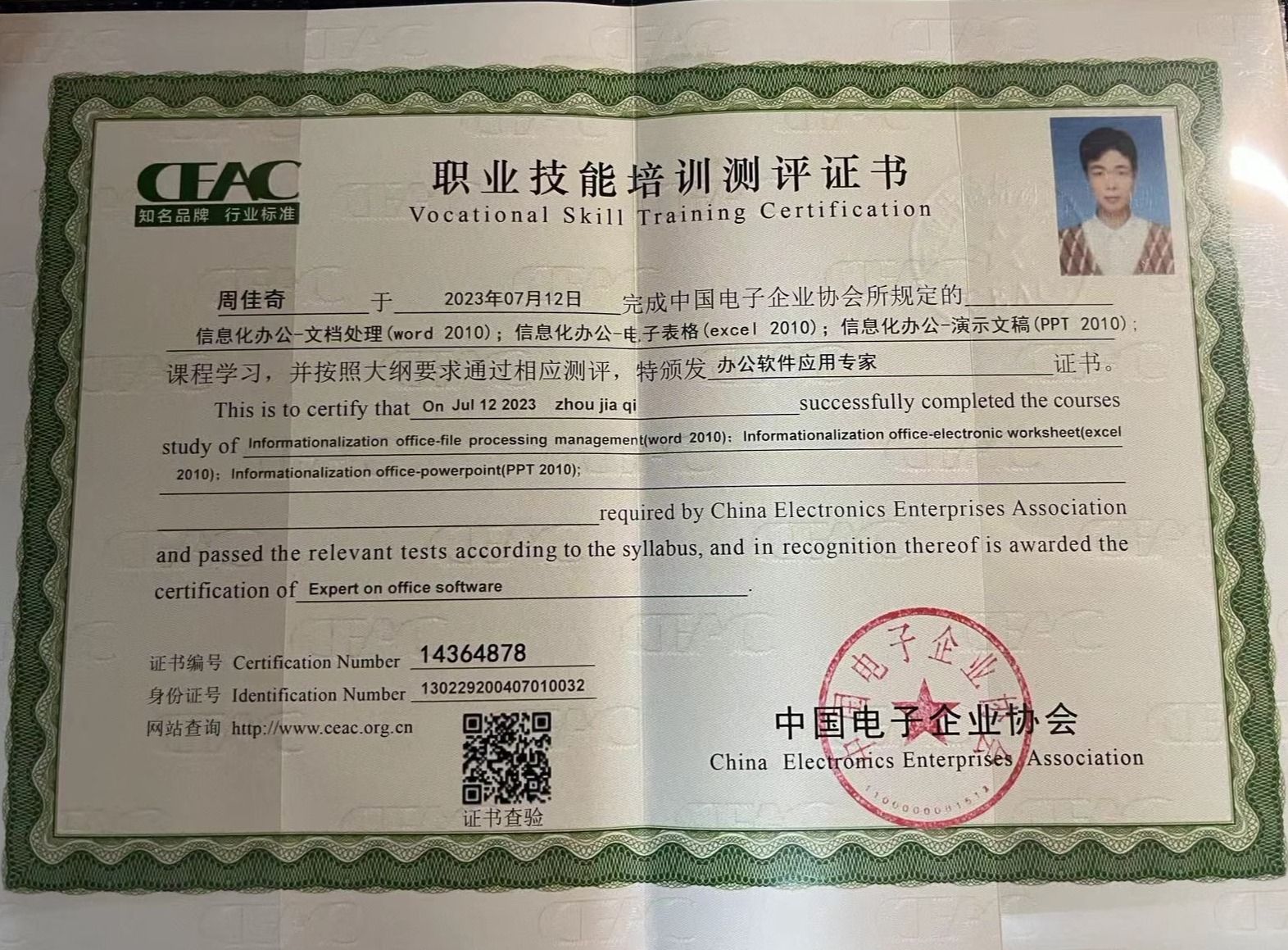 技能证书类:考取了英语四级、英语六级、计算机三级、计算机二级、普通话水平测试二级甲等、职业技能培训测评等证书。