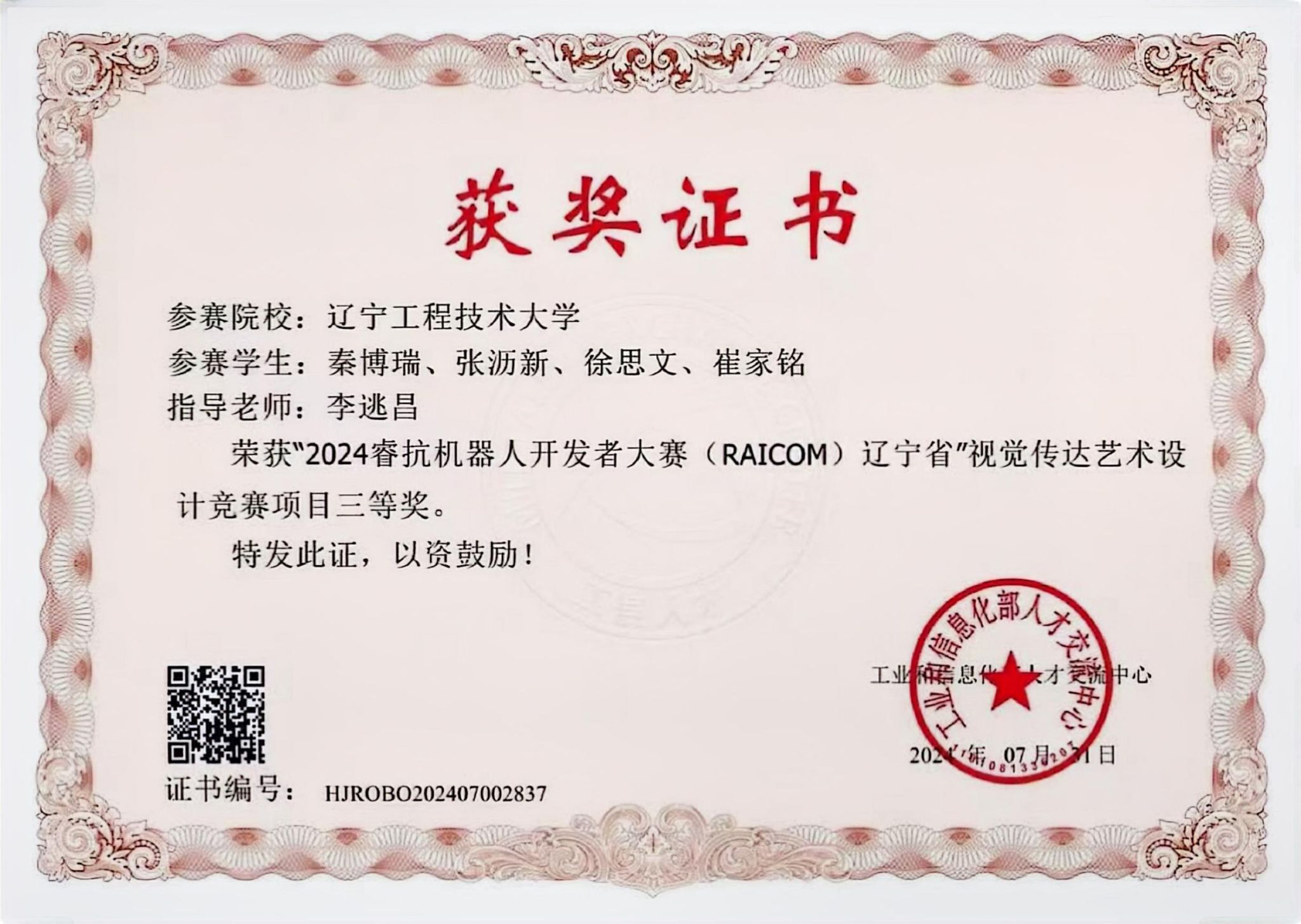 5 2024 睿抗机器人开发者大赛 奖项:辽宁省三等奖 指导教师:李逃昌