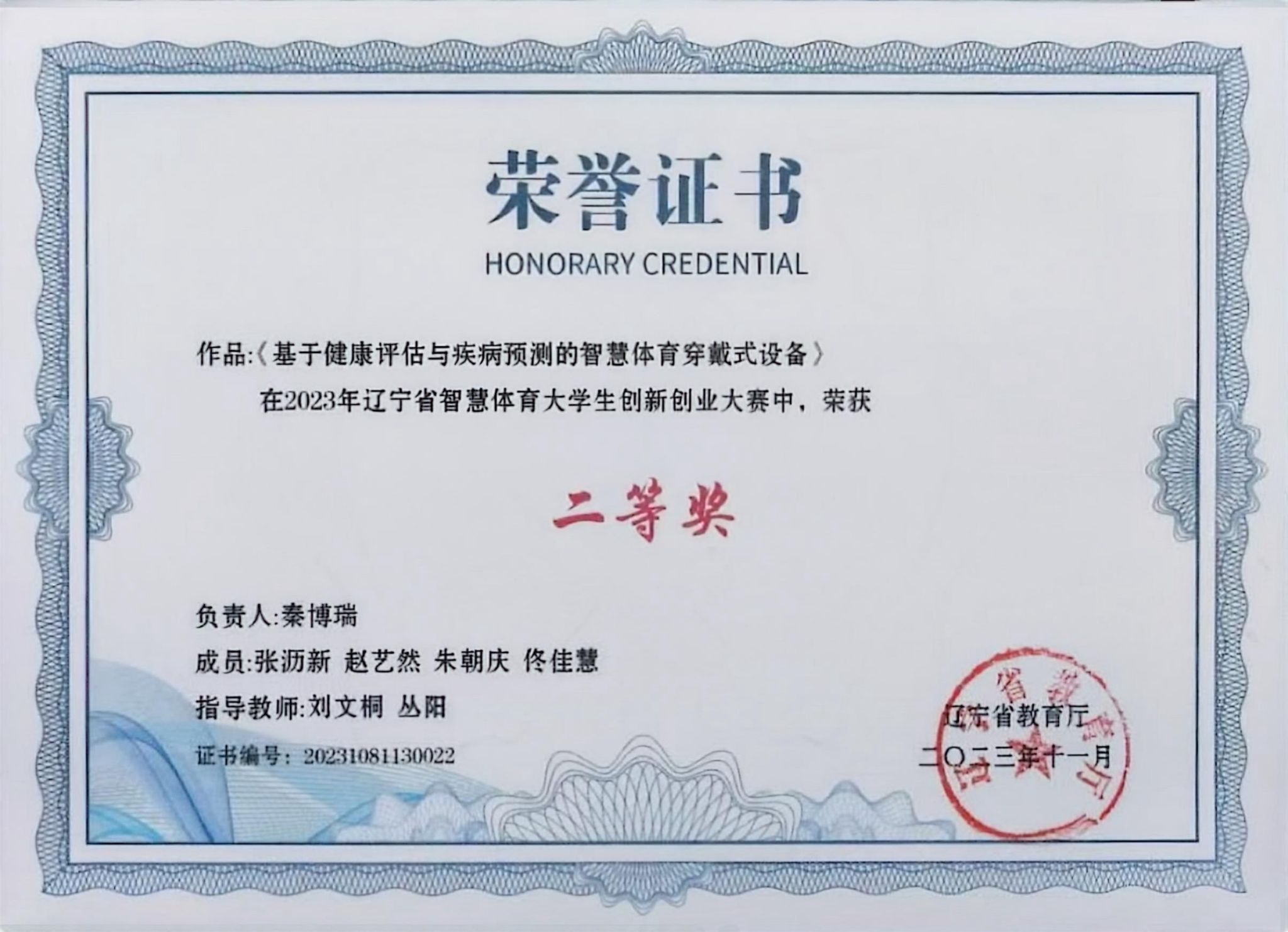 2 辽宁省智慧体育大学生创新创业大赛 奖项:辽宁省二等奖 指导教师:刘文桐