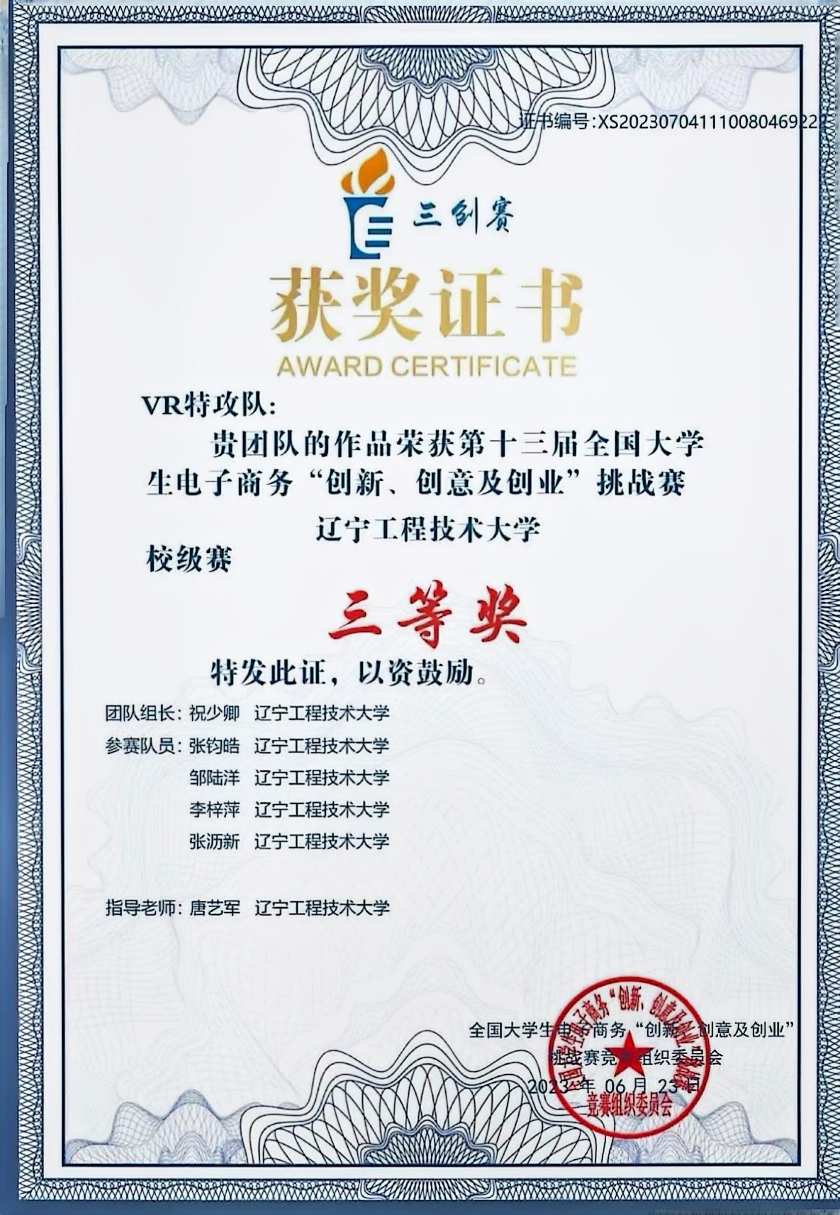 6 全国大学生电子商务“创新、创意及创业”挑战赛 奖项:校级三等奖 指导教师:唐艺军
