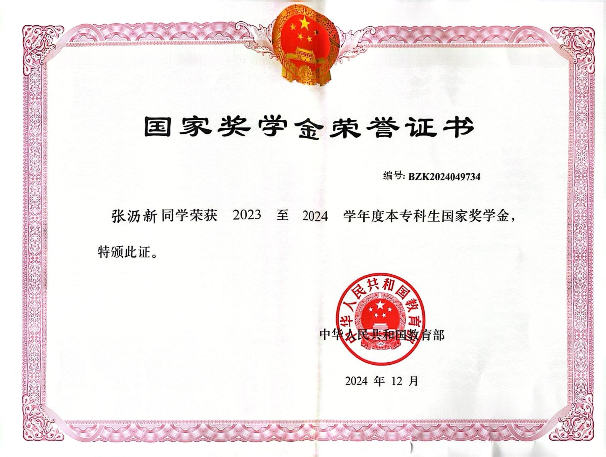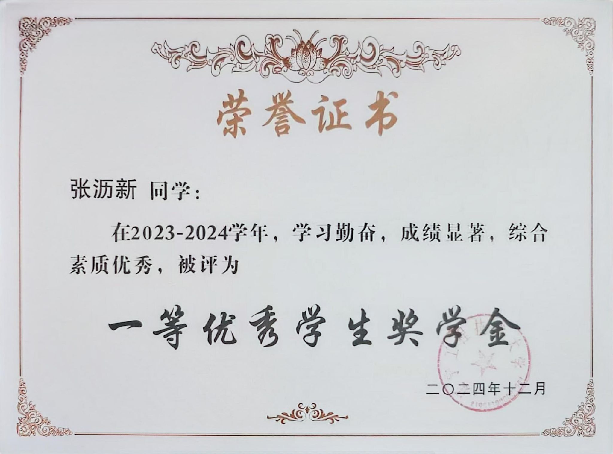 学业成绩类:2023-2024学年综合测评成绩排名专业第3,学习成绩排名专业第2;
