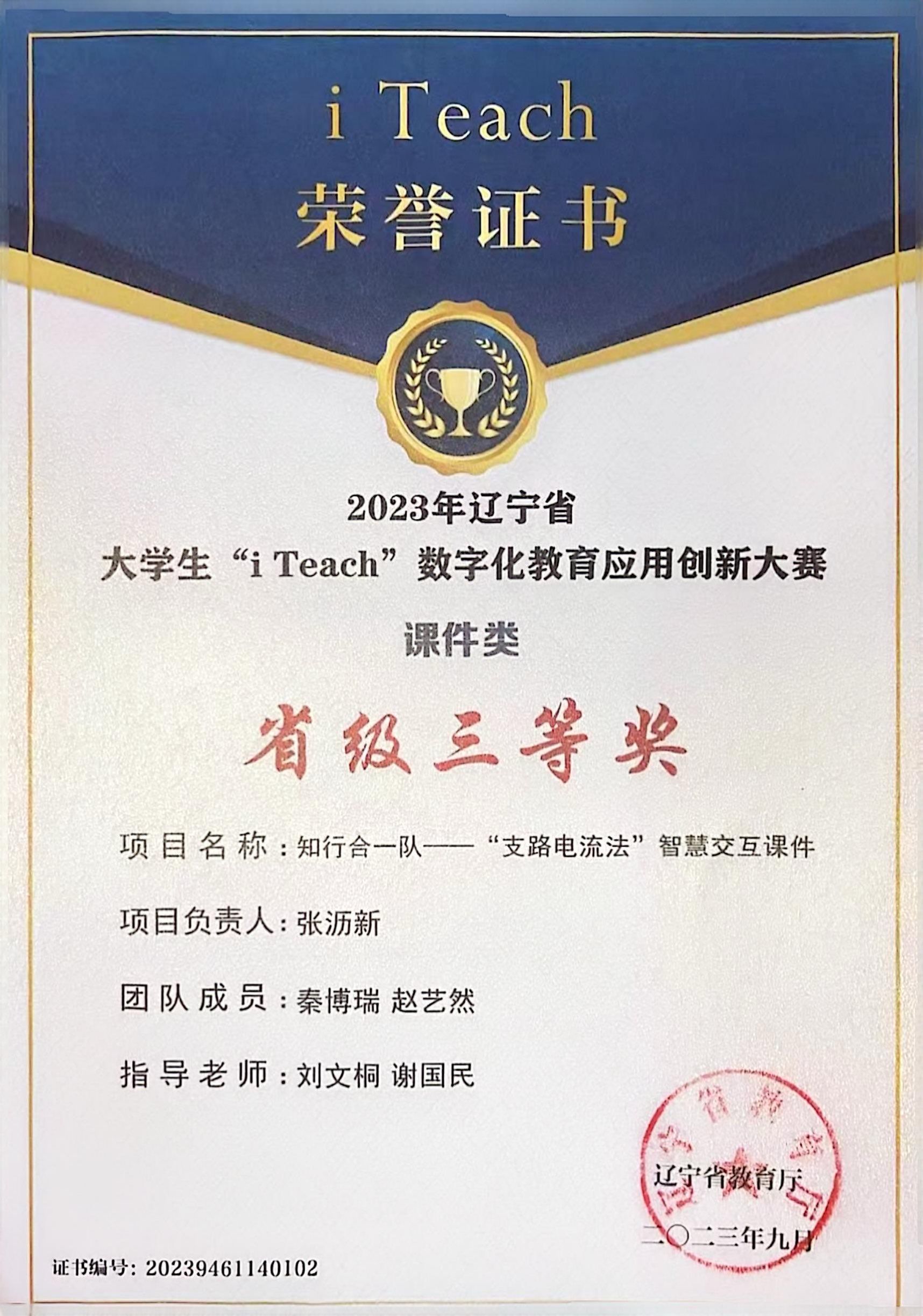 4 “iTeach”全国大学生数字化教育应用创新大赛 奖项:辽宁省三等奖 指导教师:刘文桐