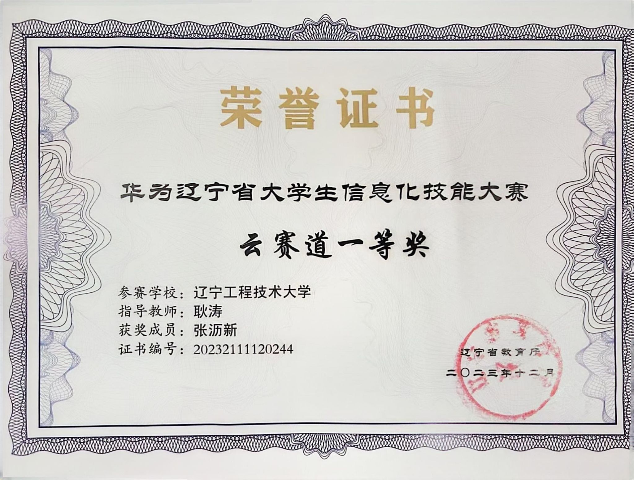1 华为信息化技能大赛 奖项:辽宁省一等奖 指导教师:耿涛