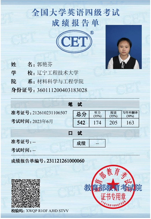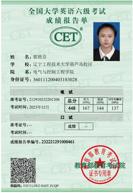 技能证书类:已通过英语四、六级