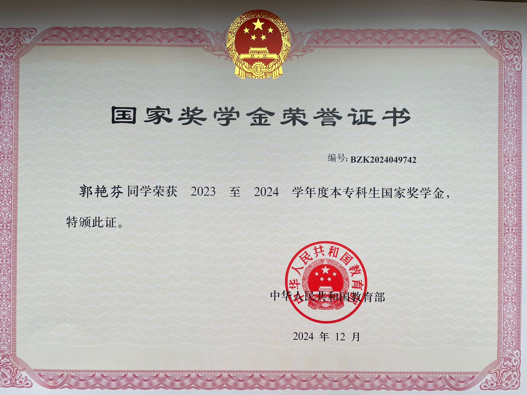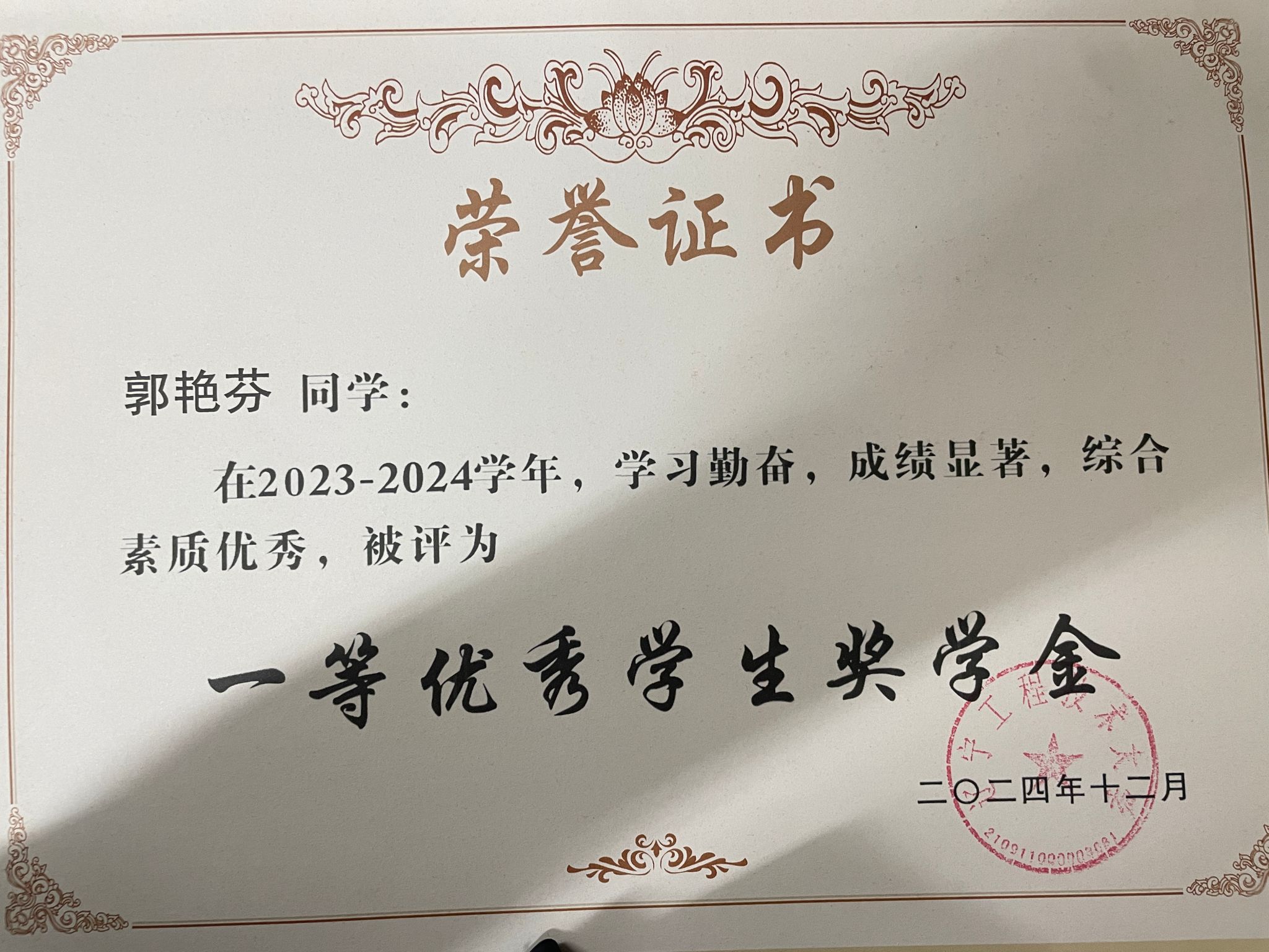 学业成绩方面:2023-2024学年综合测评成绩排名专业第1名,学习成绩排名专业第1名;