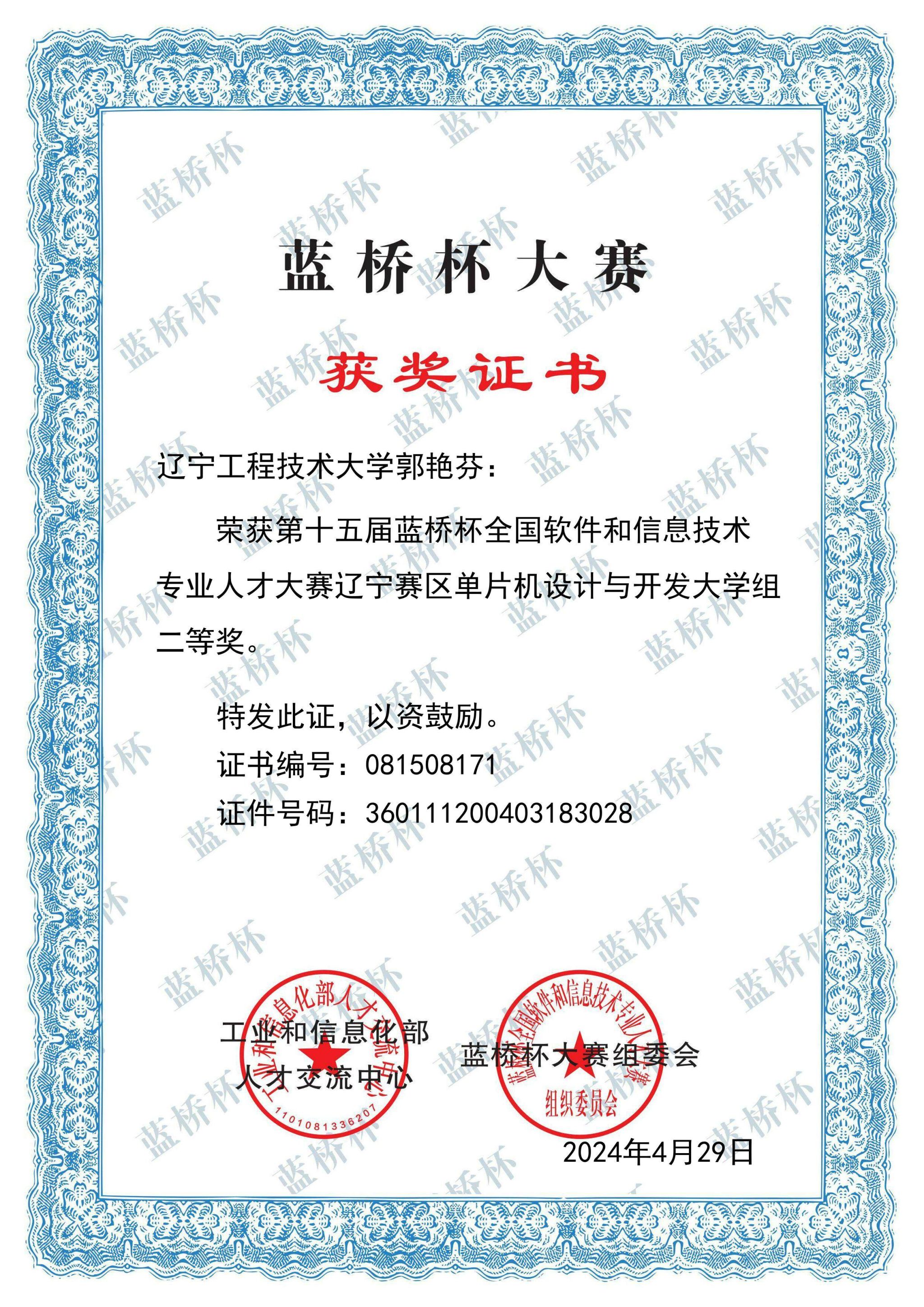 5 第十五届蓝桥杯辽宁赛区 奖项:辽宁赛区二等奖 指导教师:刘春喜